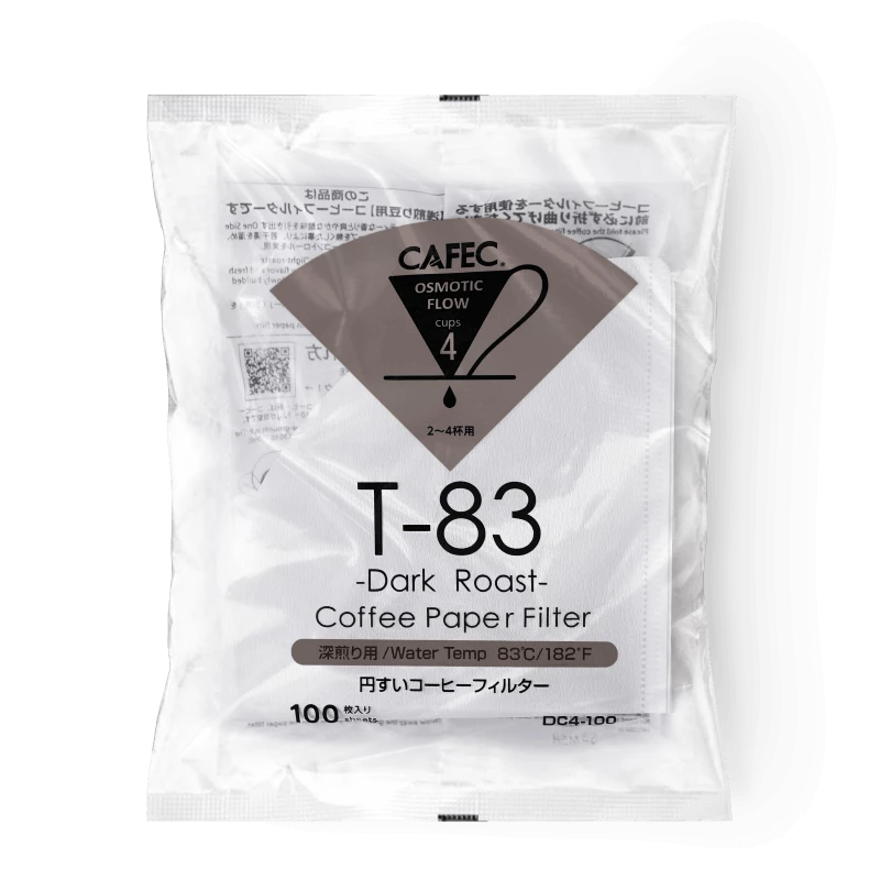 T-83 — фильтры средней плотности для тёмной обжарки. Среднее время заваривания (при рецепте 15 г кофе и 250 г воды) — 2:25 секунд.