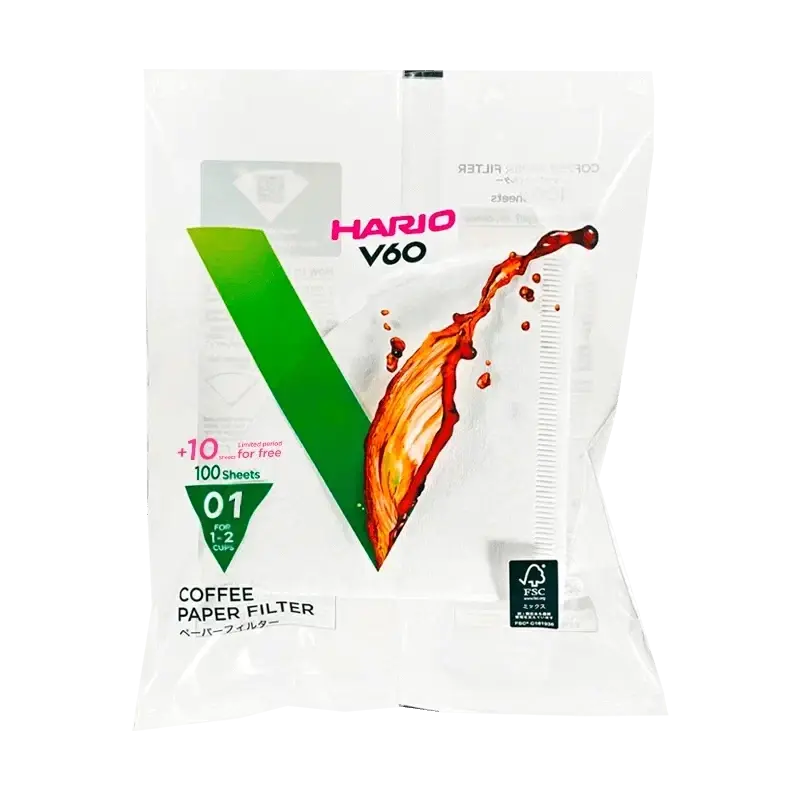 Фильтры изготовлены из отбеленной бумаги и очищены кислородом, а значит, не оставляют привкуса картона. Они отфильтровывают мелкие частицы кофе, поэтому вкус напитка получается более чистым, без масел и кофейного осадка.