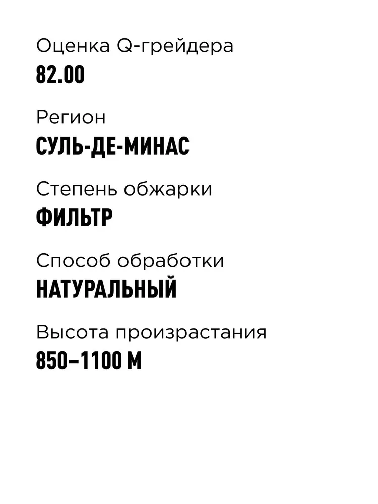 Базовый сорт для фильтра из региона Суль-де-Минас, одного из трёх основных кофепроизводящих регионов Бразилии наряду с Серрадо и Можианой.